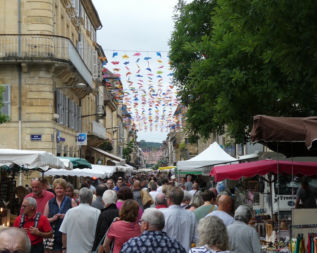 Sarlat was very busy when we arrived as the town markets were on. Probably should have checked that before we left as we didn’t get to see the town itself at its best. Nevertheless the markets were impressive and abuzz with visitors walking the 900 metres through the main streets and that doesn’t include the side streets. Everything from clothing, bags, knives, trinkets and food were available.