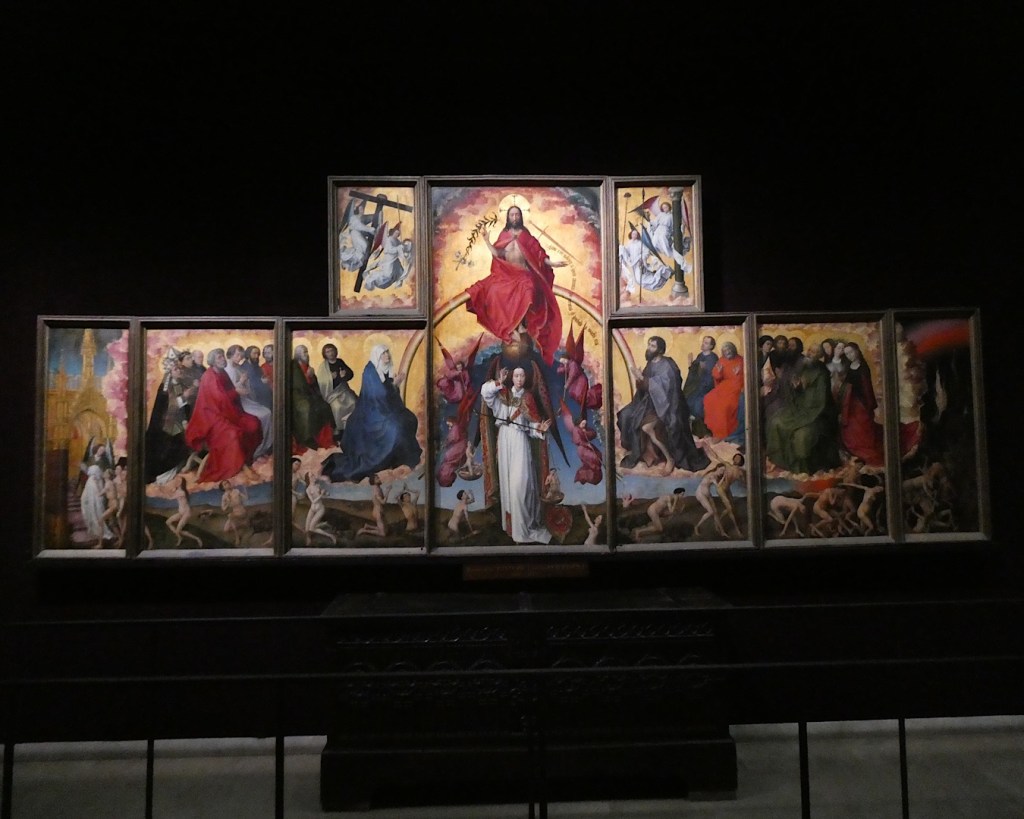 The most iconic of the attractions in Beaune is the Hostel Dieu, a hospital for the poor established in 1443 and continued until 1971. It has now been restored to some originality and is a museum that is very popular with tourists. The outstanding roof made of glazed tiles and arranged in colourful patterns that is characteristic of the wealth of the owners in the region of Burgundy. Nicolas Rolin, chancellor to the Duke of Burgundy, and his wife Guigone were instrumental in caring for the poorer citizens of Beaune and their wealth built the hospital and employed the medics and religious nuns to care for its patients. Over the years a section was set aside to care for wealthy dying patients who then bequeathed some of their money to the continuation of the hospital for the poor.